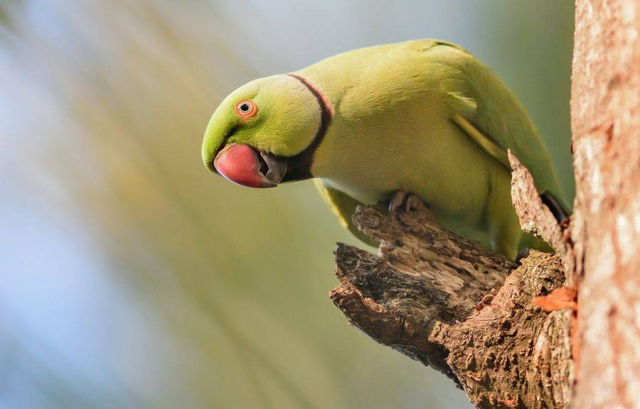 Кольчатый розовогрудый попугай – стайная птица, которую крайне сложно встретить в одиночестве. Чаще всего встречающееся количество особей в стае – от нескольких представителей до пары десятков. Очень редко могут собраться в более крупные группы, насчитывающие тысячи пернатых. Обычно такая «преступная банда» собирается вместе для пожирания всего, что вырастил своими силами не самый удачливый фермер. Редко преодолевают большие расстояния, обычно останавливаются на освоении одной территории. При этом удачно соседствуют с другими птицами, даже с шумными.