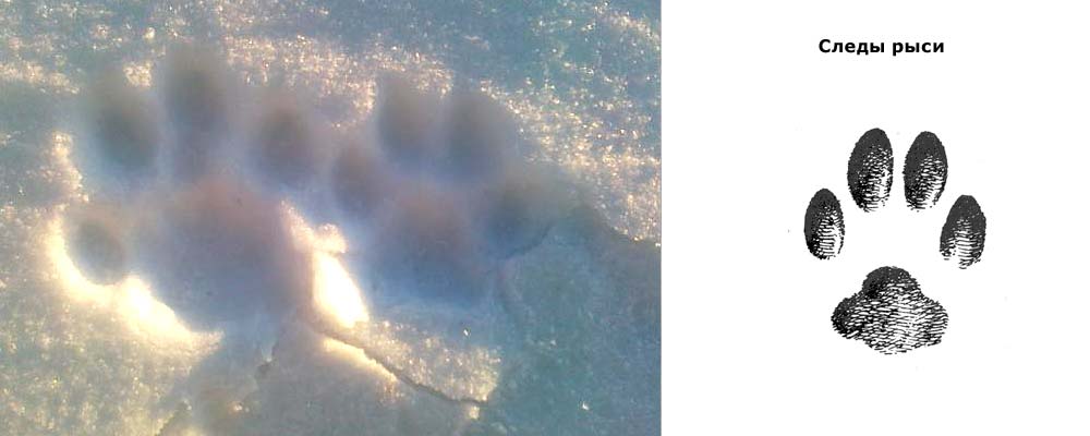 | Половые отличия | Заметить это возможно только в том случае, если следы были оставлены взрослыми особями. У самцов отпечаток более широкий и, в целом, крупнее. Длина от передней лапы у самца больше, чем ширина примерно в 1,3 раза. Что касается самок, то у них этот же показатель составляет 1,5, то есть, здесь речь идет о более маленьком отпечатке. Рядом очень часто можно обнаружить пятна, оставленные мочой, особенно это актуально для заснеженной местности. Самки, как правило, мочатся там же, где идут, и это выглядит как аккуратная лужица. А вот самцы предпочитают метить какие-нибудь возвышающие предметы – дерево, столбик, куст и т.д., причем для них характерно разбрызгивание мочи. |