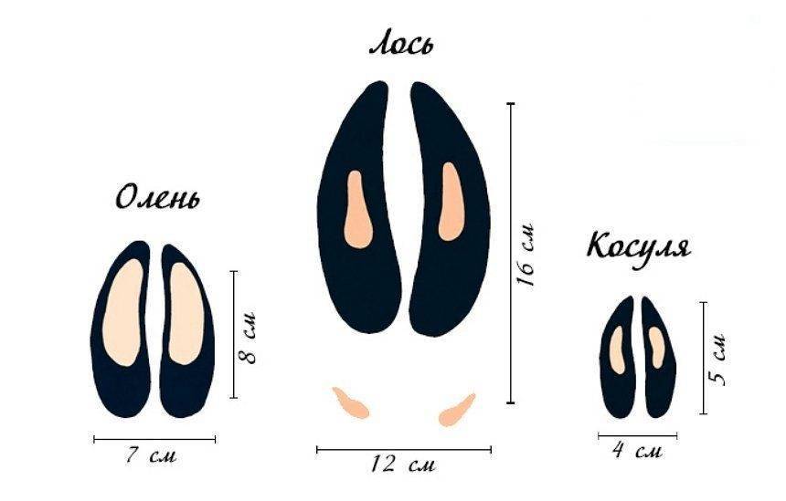 Все парнокопытные оставляют схожие следы. Эти отпечатки напоминают параллельно лежащие две дольки апельсина.