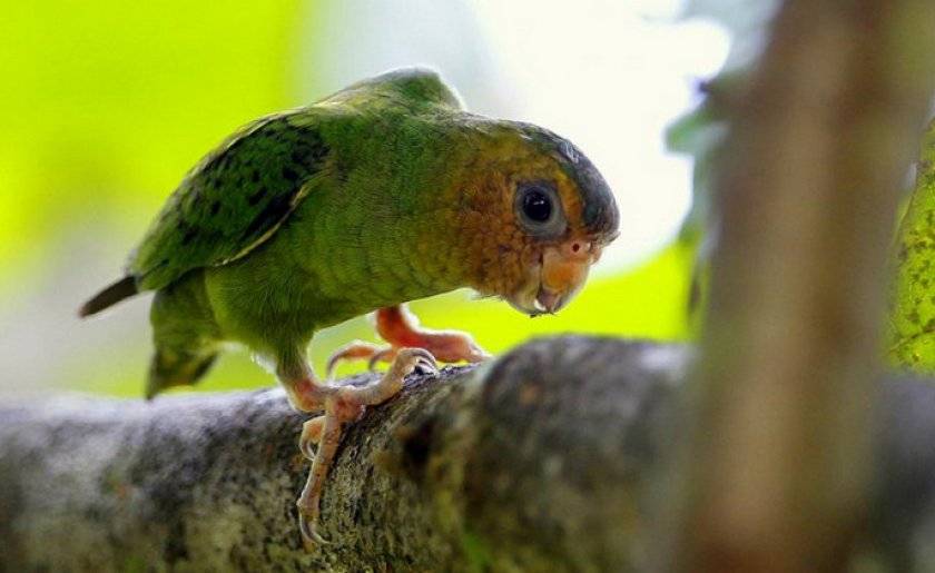 Житель одного из островов Индийского океана – Маврикия. Оперение – зеленое, с небольшим темным оттенком на крыльях. На данный момент занесен в красную книгу, как близкий к вымиранию.