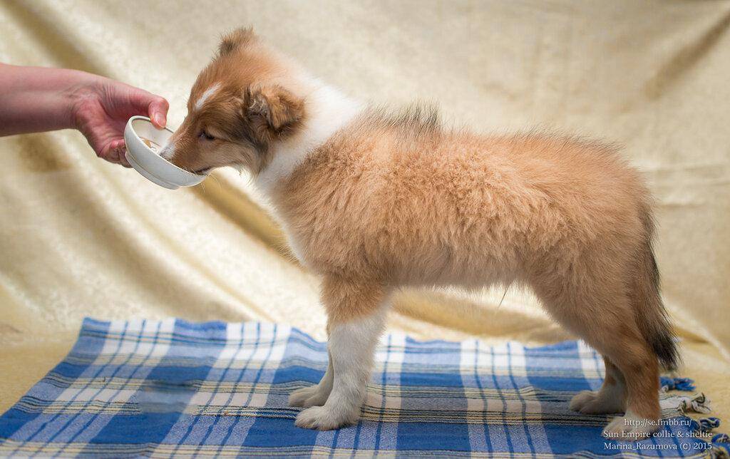 Раз в 10–12 дней добавляйте к привычному рациону питомца молоко. Молоко – источник кальция, необходимый для укрепления костей, зубов. Несмотря на свои незначительные размеры, шелти любят сытно покушать. Часто у представителей этой породы регистрируется ожирение. Соблюдайте режим питания и не подкладывайте корм в тех случаях, когда питомец опустошает одну миску за другой. Поверьте, он сытый, просто не чувствует меры.