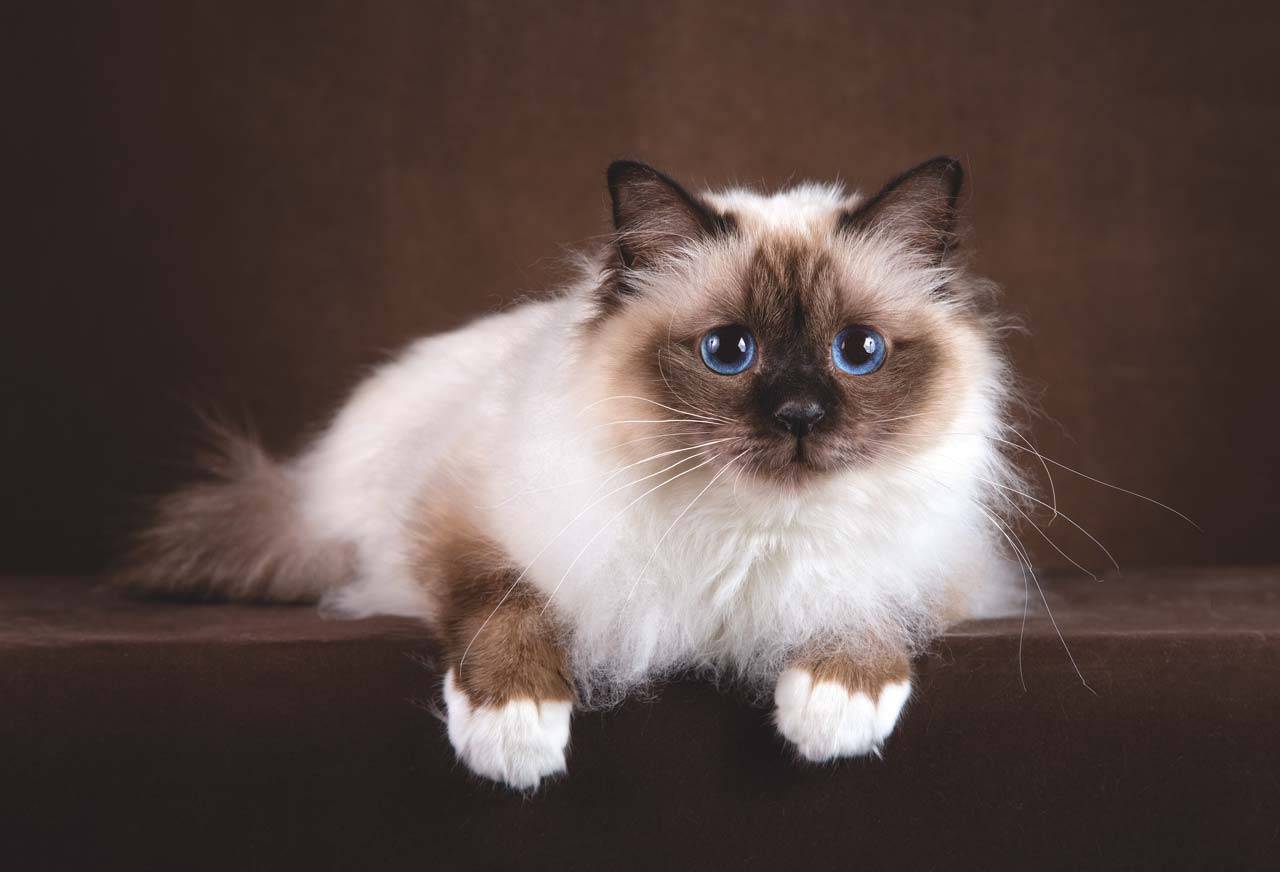 По внешнему виду бирманцы похожи на Рега Доула, длинная мягкая шерсть; красивые глазки и похожий меховой декор – за исключением так называемых «белых носков». В Бирме ступни всегда белые. В Бирме эта кошка священна.