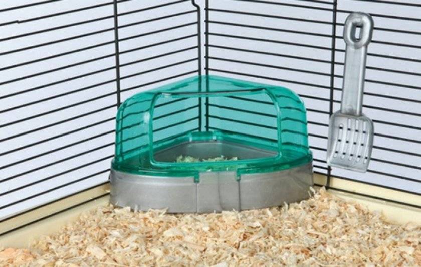 В зоомагазинах продаются специальные туалетные уголки, которые крепятся в углу клетки. Для них подойдет кукурузный наполнитель, который отлично справляется с неприятным запахом.
