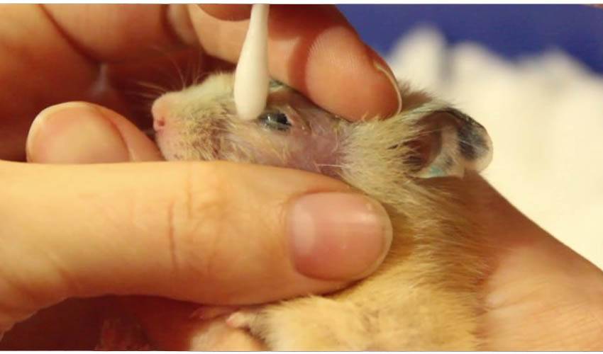 Далеко не все знают, что делать, если у хомяка гноится глаз, в первую очередь нужно провести осмотр, для этого веки очищаются от жидкости. Для этого нельзя применять какие-либо химические средства, которые могут повредить слизистую поверхность глаза, к примеру, таким является перекись водорода. Если глаза слиплись гноем, тогда силой раскрывать их нельзя, поскольку это чревато не только болевыми ощущениями, но и более серьезными последствиями для здоровья питомца, поэтому нужно веки терпеливо размочить
