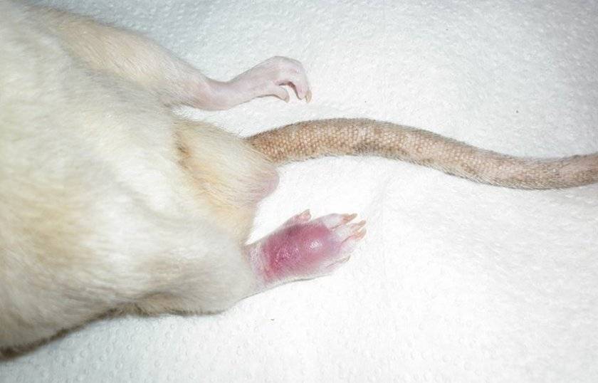 Опухоль у крысы на боку обозначает, что новообразование локализовалось в лёгких или желудке. Если оно разрастается, то бугорок можно прощупать даже на ноге грызуна. Основными признаками опухоли станут малоподвижность, кровь изо рта, ануса или уретры.
