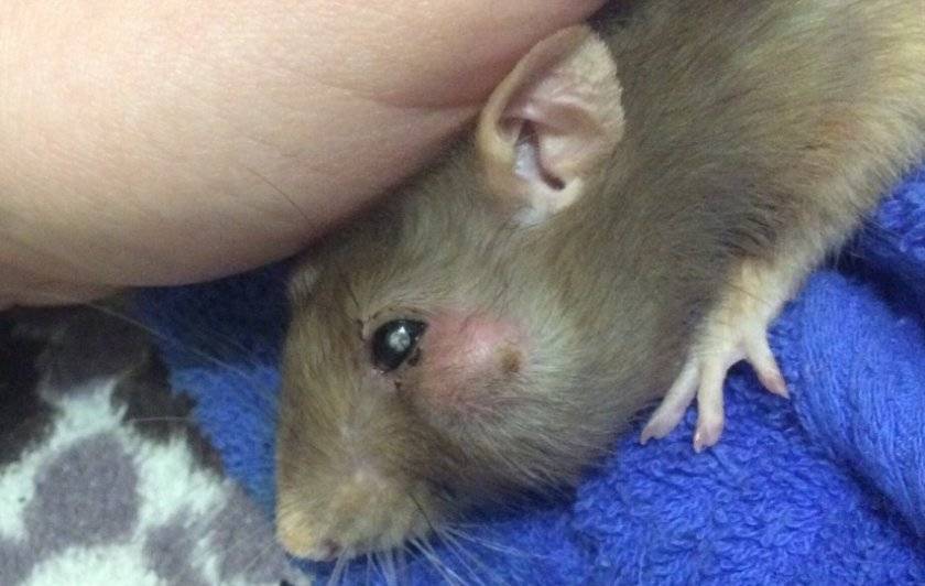 Случается, что у крысы диагностируют опухоль на шее. При пальпации она ощущается, как плотный подкожный шарик, который можно легко перекатить между пальцами. Это может быть как увеличенная щитовидка, так и воспалённый лимфатический узел или новообразование. Так что диагностику нужно проводить только в специализированной ветеринарной клинике.