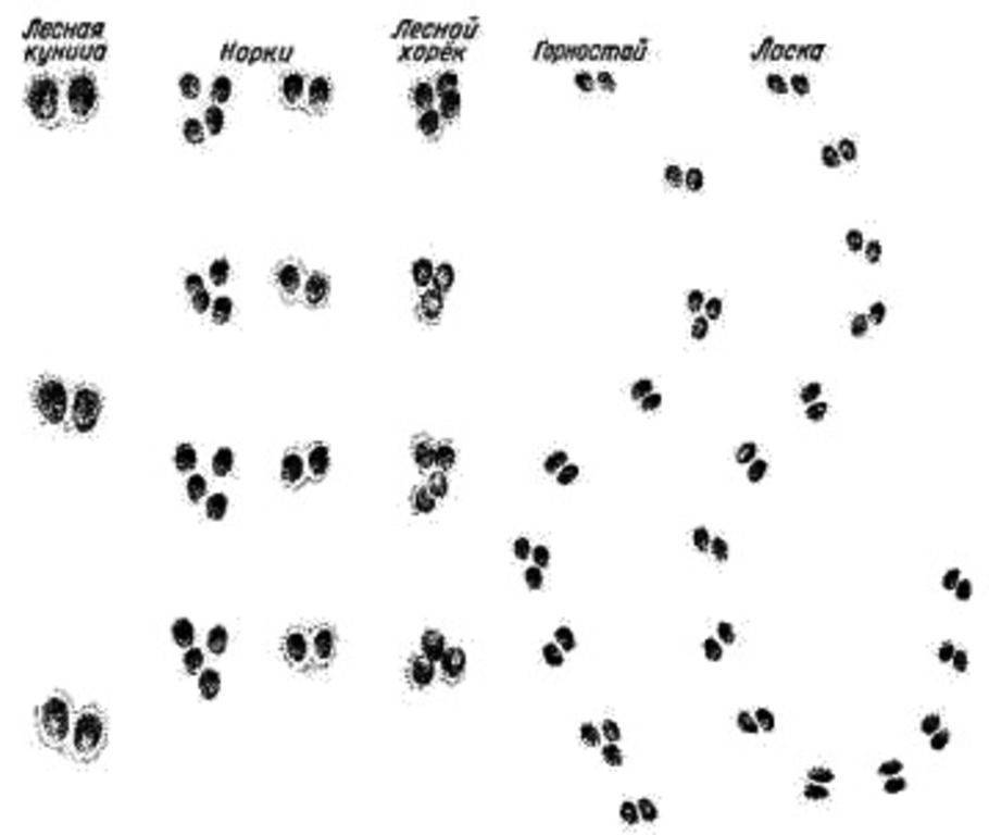 | Размеры | Немного меньше горностая | Более крупные особи |