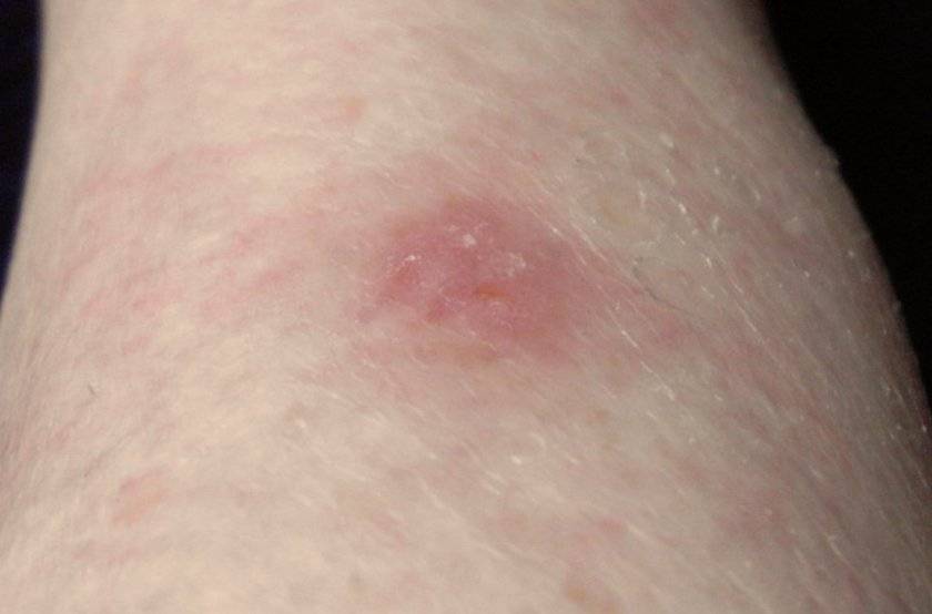- Сразу на месте повреждение проявляется белое припухлое пятнышко с розоватым ободком.