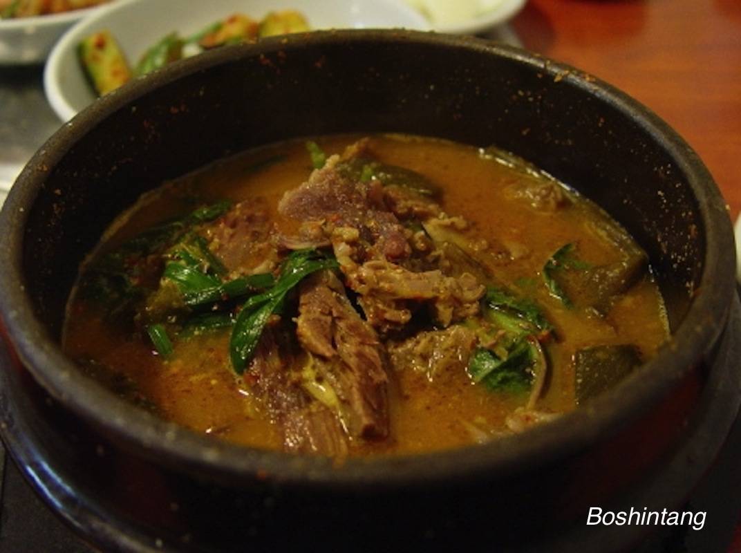 Согласно службе новостей BBC, в 2003 году в Корее приблизительно 4000-6000 ресторанов предлагали супы, приготовленные из мяса собаки. Эти супы стоят около 10$, а блюда из мяса собаки на пару с рисом – около 25$. BBC утверждает, что в год на корейских кухнях употребляется до 8500 тонн собачьего мяса.