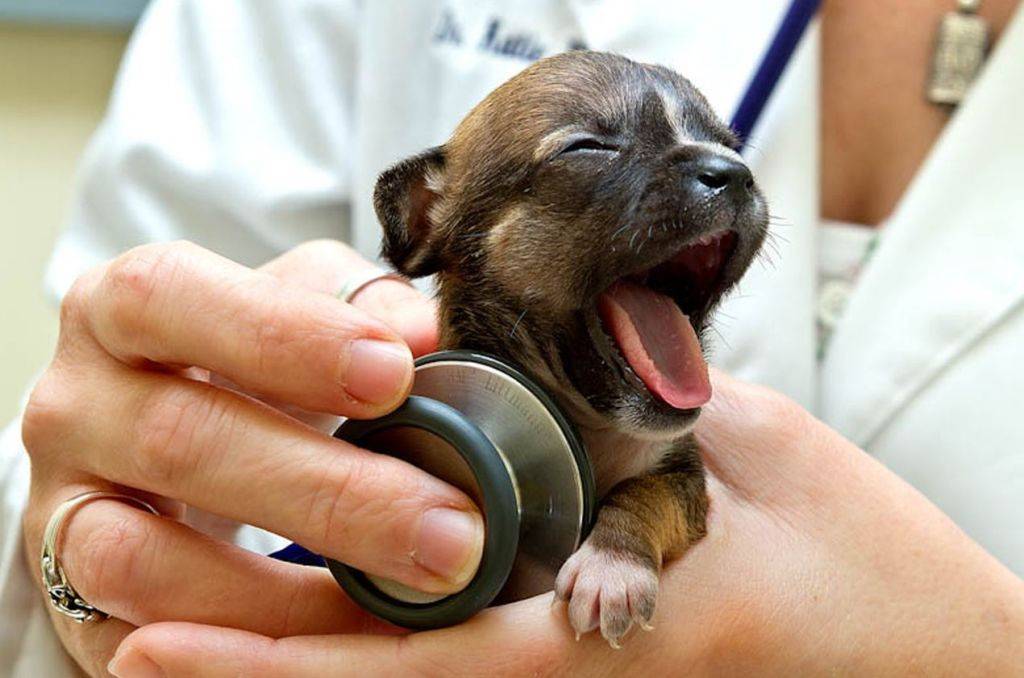 Первым делом нужно через несколько недель после рождения осмотреть щенят на наличие врождённых дефектов. После рождения их лучше не трогать, так как можно нанести травму хрупкому телу. В случае обнаружения серьёзных дефектов, щенят чаще всего усыпляют.