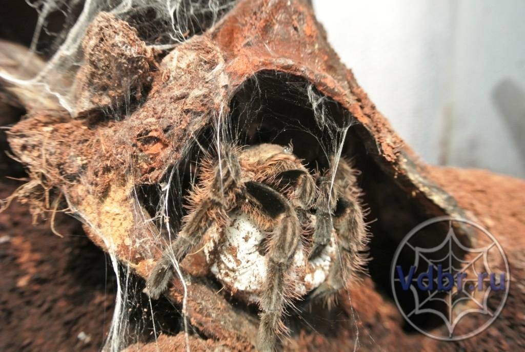 После подсадки самца к самке необходимо дождаться, когда у него зарядятся бульбы. По завершении процесса репродукции новоиспечённого папашу отсаживают обратно в его террариум. Если всё прошло удачно, особь женского пола приступает к плетению кокона, в который затем откладывает яйца. Их количество может варьироваться от 300 до 1000 штук. Уже спустя 6 недель на свет появятся личинки, рост и развитие которых происходит в интенсивном темпе. Через несколько недель молодые паучки готовы к самостоятельному проживанию.