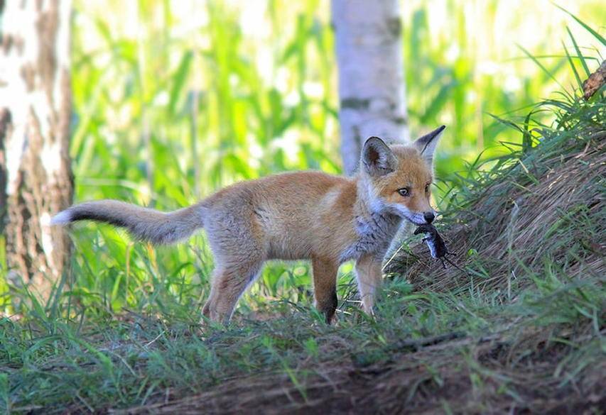 Зимой и в период вскармливания потомства лиса охотится не только на мышей, но и на более крупных животных, а также птиц.