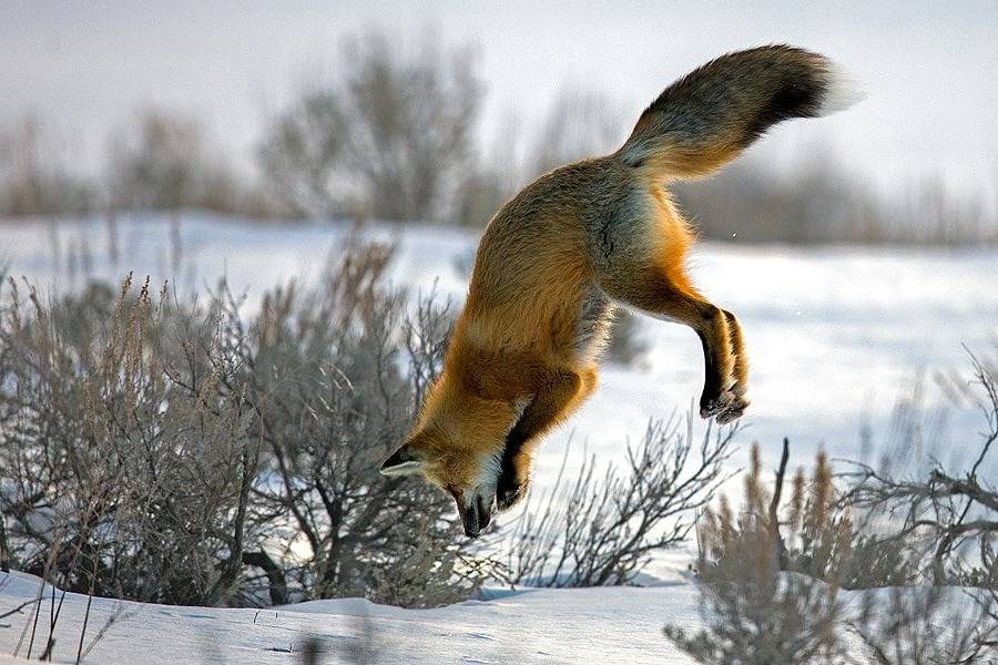 Пушистый хвост лисицы служит своеобразным стабилизатором во время бега, а в зимние холода используется для дополнительной защиты от морозов.