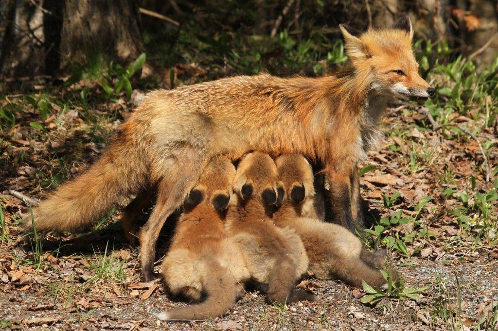 - В лисьей семье заботу о потомстве берут на себя оба родителя. Отец еще до появления щенят ухаживает за своей самкой и помогает ей обустраивать логово.