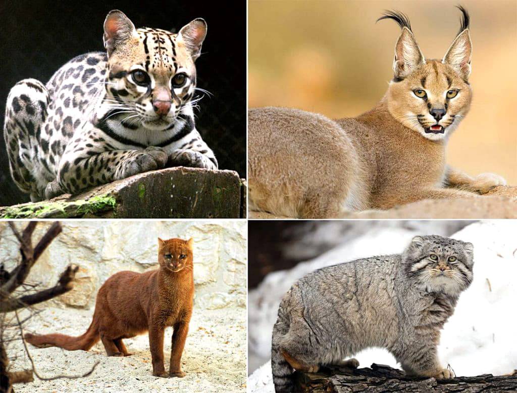 Когда-то всех кошачьих делили на три подгруппы. В наше время зоологи делят семейства диких кошачьих на больших и малых кошек. Раньше еще выделяли гепардовое подсемейство, но потом в результате исследования ДНК этих зверей определили, что они близки к малым кошкам. В каждом подсемействе выделяется несколько родов, которые отличаются ареалом обитания, размерами, окрасом, привычками.