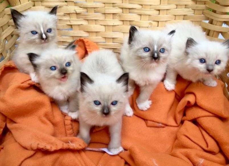 Случается, за рэдголлов принимают их ближайших сородичей – бирманских кошек, так как они очень схожи по окрасу. Однако стандарты рэгдолла решительно отличаются и строго очерчены. Допускаются три классических стандарта окраса: колорпойнт, миттед, биколор. Каждый из них имеет 4 разновидности: сил (темно-коричневый), шоколадный, голубой, лиловый.