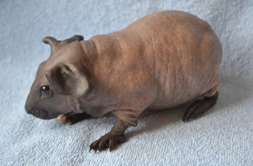 Забота о лысых питомцах заключает в себя все те же процедуры, что и содержание морской свинки пушистых пород. Лишь отсутствие шерсти вносит свои коррективы. Кожа у скинни и болдуина более чувствительна, так как подвержена прямому воздействию окружающей среды. Поэтому необходимо учитывать этот фактор, обеспечивая питомца всем необходимым в домашних условиях.