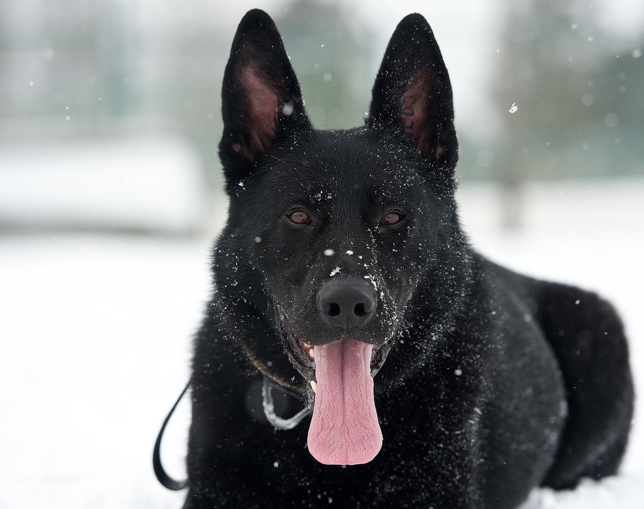 Чёрная немецкая овчарка может быть несколько более крупной, чем собаки других окрасов