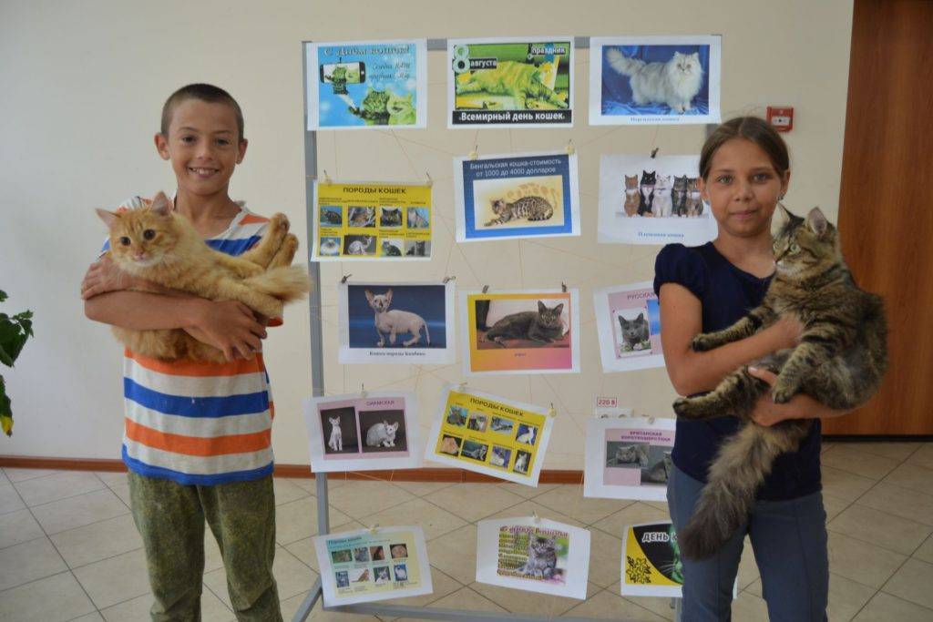 Провести открытые уроки в младших классах, посвященные кошкам. Это может быть не только интересный урок, посвящённый этим прекрасным домашним животным, но и обсуждение фотографий, интересный урок с использованием кошачьей энциклопедии, а так же сочинение о своих домашних любимцах, написанное школьниками. Чем интереснее будет урок с использованием различных материалов, тем лучше. Вы можете рассказать о странах, где это животное считается священным, рассказать о том, как живут кошки, почему они любят валериану, а так же много забавных и интересных случаев из кошачьей жизни. Так же можно посмотреть в классе мультфильм об этих животных.