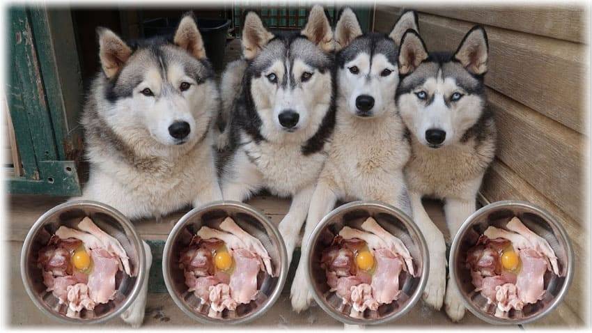 Делая выбор в пользу натурального типа кормления, очень внимательно и тщательно обдумайте, каким будет рацион собаки. Хаски обязательно должны получать мясо: вареная говядина темно-красного цвета или сырая, но ошпаренная кипятком.