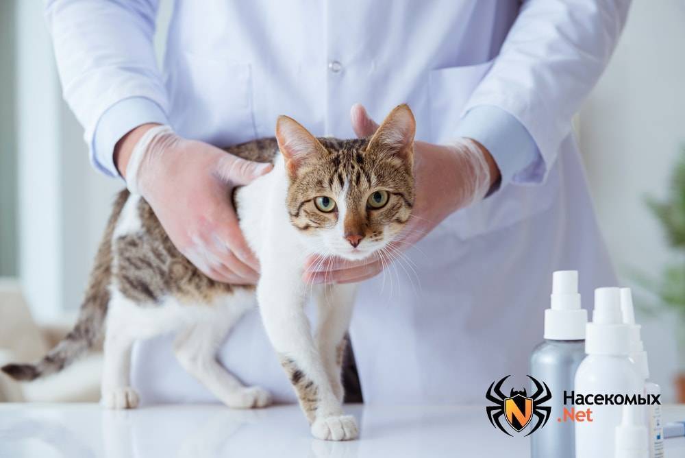 - Подвергнуть обработке спреем кошачью подстилку во избежание появления новых вредных насекомых.