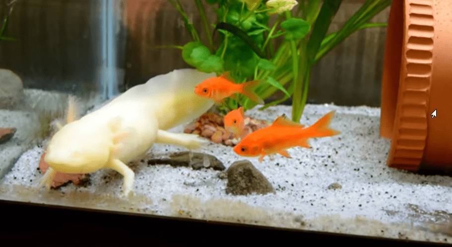 Но, из каждого правила есть исключение, позволяющее содержать аксолотлей с рыбами. И это исключение — золотые рыбки. Они очень медлительные, а если их хорошо кормить, то большинство даже не будет пытаться преследовать аксолотля.