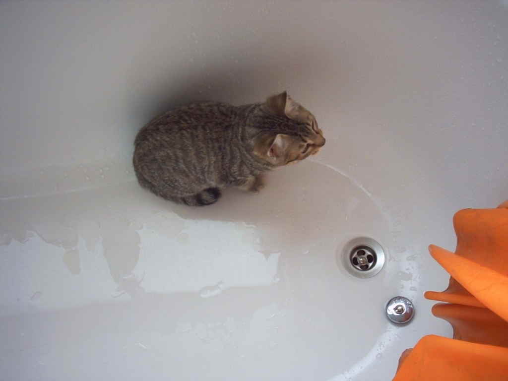 Среди домашних питомцев тоже есть любопытные уникумы. Многие любят играться со струйкой воды из-под крана, шлепать лапкой по воде в ведре или кастрюле, ловить капли дождя или стекающей воды с крыш. В жаркое время коты любят охлаждать мордочку под струей воды. Особо любопытные предпочитают запрыгнуть в ванну к хозяину во время приема душа. Тем не менее, они это делают добровольно.