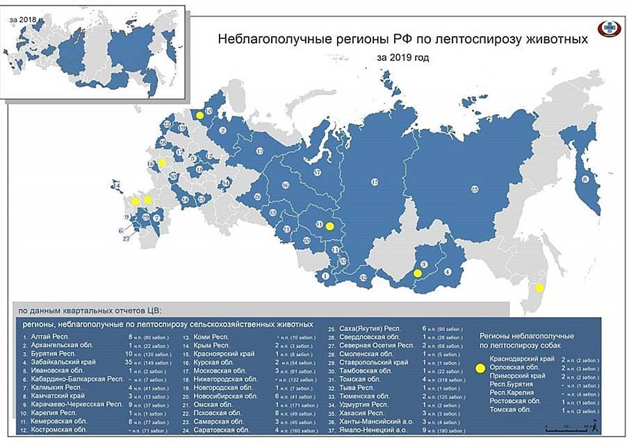 В 2019 году было выявлено 111 неблагополучных пунктов по лептоспирозу, где заболело 1950 голов. Тренд по неблагополучию – нарастающий, по заболеваемости – нисходящий.
